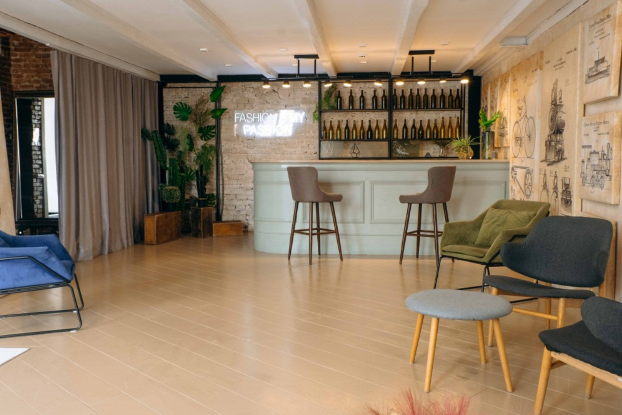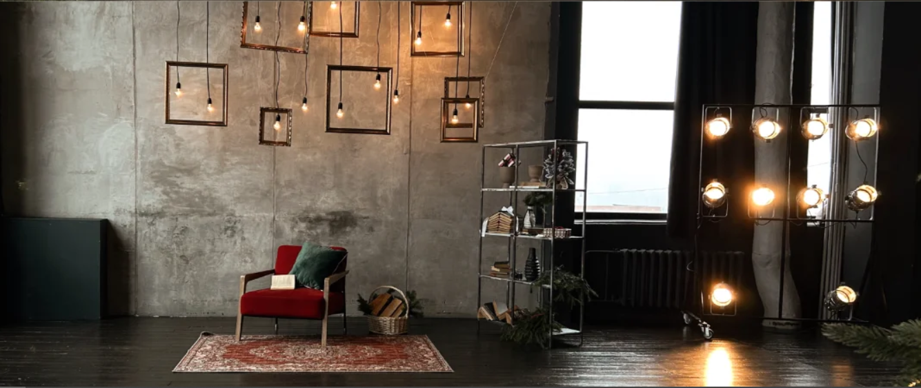 Фотостудия — это 2-5 интерьеров в одном пространстве в разных стилях: классических, современных, винтажных и т. д., в светлых или тёмных цветах.